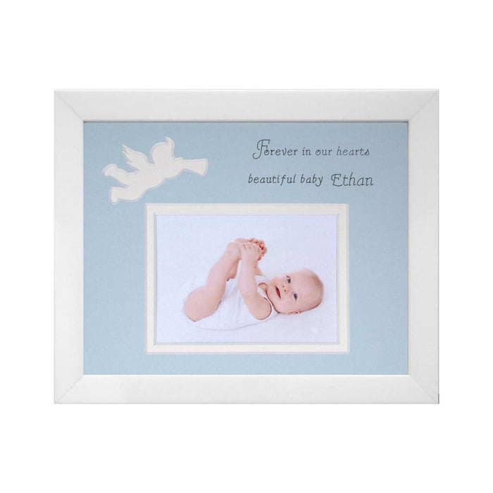 The cherub-shaped remembrance mount is inscribed with the standard quote and baby boy's name.