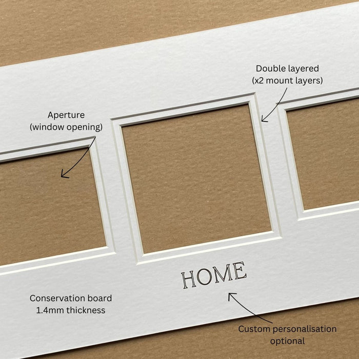 A 20x8 ins multipicture mat for your framing project, ideal for weddings, pets, family photographs, paintings, artwork drawings and much more.