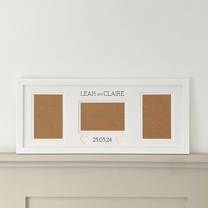 This contemporary and lightweight frame has two white mount layers with your choice of picture layout. Ideal for home decor and Wedding, Anniversary or Engagement gift for couples or best friends / friendship